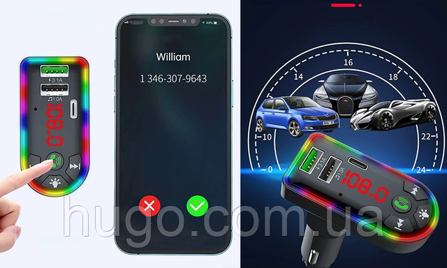 -30%Автомобільний FM-Модулятор 3в1 з Bluetooth, RGB підсвічуванням та LED-екраном F4/F7 / Фм-трансмітер з USB в машину