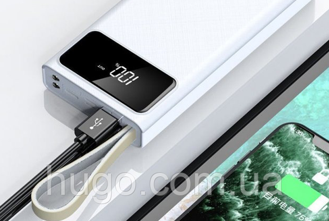 Power Bank на 30000 mAh, K-320, 4 роз'ємами Білий / Зовнішній акумулятор з ліхтариком / Універсальний повербанк