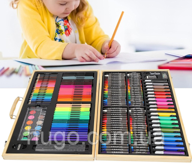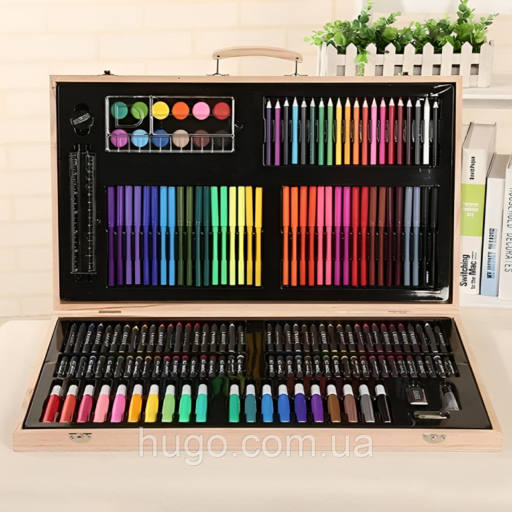 -30%Дитячий набір для малювання 180 предметів у дерев'яній валізці / Художній набір для творчості