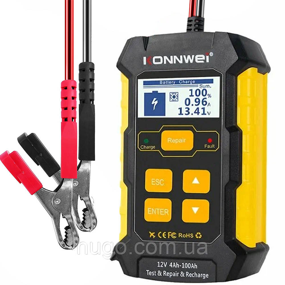 KONNWEI KW510 - це багатофункціональний зарядний пристрій для автомобільних акумуляторів, розроблений для безпечної та ефективної зарядки 12-вольтових свинцево-кислотних акумуляторів різних типів, включаючи AGM, GEL та EFB. Пристрій автоматично розпізнає тип акумулятора та вибирає оптимальний режим заряджання, забезпечуючи його довговічність та максимальну продуктивність.